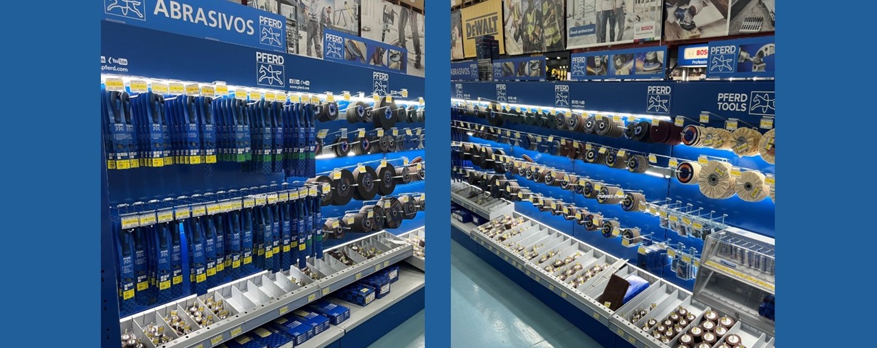 En él se expone una completa gama de discos de corte y discos de láminas, entre otras herramientas, siempre contando con el equipo de expertos del centro, dispuestos a aconsejarte según tus necesidades. PFERD TOOLS es sinónimo de herramientas que inspiran: de alta calidad, precisas e innovadoras. Las herramientas de lijado, afinado y pulido PFERD están desarrolladas, fabricadas y probadas respetando los estándares más estrictos.