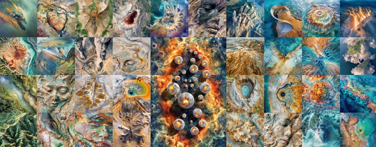 La artista construye una constelación en la que dialogan arte, ciencia y cultura digital. Con un conjunto de imágenes de gran complejidad formal y fuerte carga metafórica, compone un ecosistema a partir de metamorfosis entre lo humano, la naturaleza y el cosmos. Su trabajo se sitúa en un territorio híbrido donde convergen referencias de la ciencia ficción, la iconografía científica y lenguajes visuales de la cultura tecnológica.